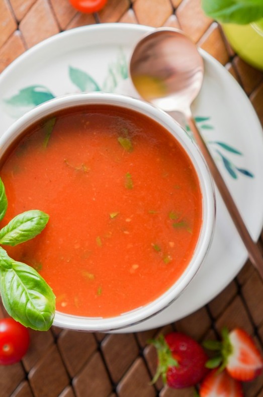 Подавать с листьями базилика и ломтиком хрустящего хлеба.