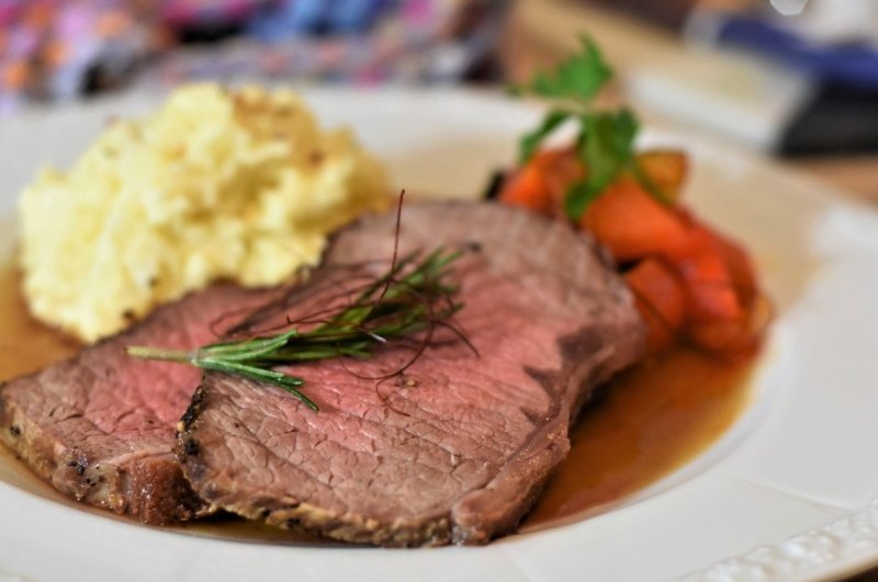 Ростбиф – отличный выбор для праздничного стола. Натрите говядину (вырезку или толстый край) солью, перцем, чесноком и травами (тимьян, розмарин). Обжарьте со всех сторон до корочки. Запеките при 180 °C 20–30 минут (до 55–60 °C внутри). Дайте мясу отдохнуть 10 минут под фольгой – оно останется сочным и розовым.